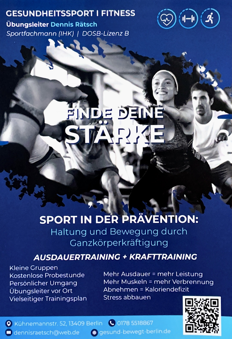 Es freut uns, dass Sie Interesse an unserer Internetseite haben. Wir bieten Ihnen ein vielseitiges Freizeit- und Gesundheitsport-Programm an. Unsere Kurse werden von Sportart-übergreifend ausgebildeten Trainern geleitet, die regelmäßig an Fortbildungen teilnehmen um den hohen qualitativen Anspruch unserer Kurse zu gewährleisten. Darüber hinaus garantieren wir unseren Teilnehmern mit den Kursangeboten eine hohe und gleichbleibende Qualität. Unsere Angebote setzen auf die präventive Wirkung von Bewegung. Sie können ihr Herz-Kreislauf-System stärken, ihr Skelett-System, wie beispielsweise den Rücken stabilisieren oder auch gezielte Stressbewältigung verfolgen. Unsere genutzten Sportstätten liegen in der Regel im Berliner Stadtteil Reinickendorf/ Wedding. Beugen Sie gegen Muskelschwund und Haltungsschäden, nachlassende Beweglichkeit und Verspannungen und gegen Übergewicht vor.